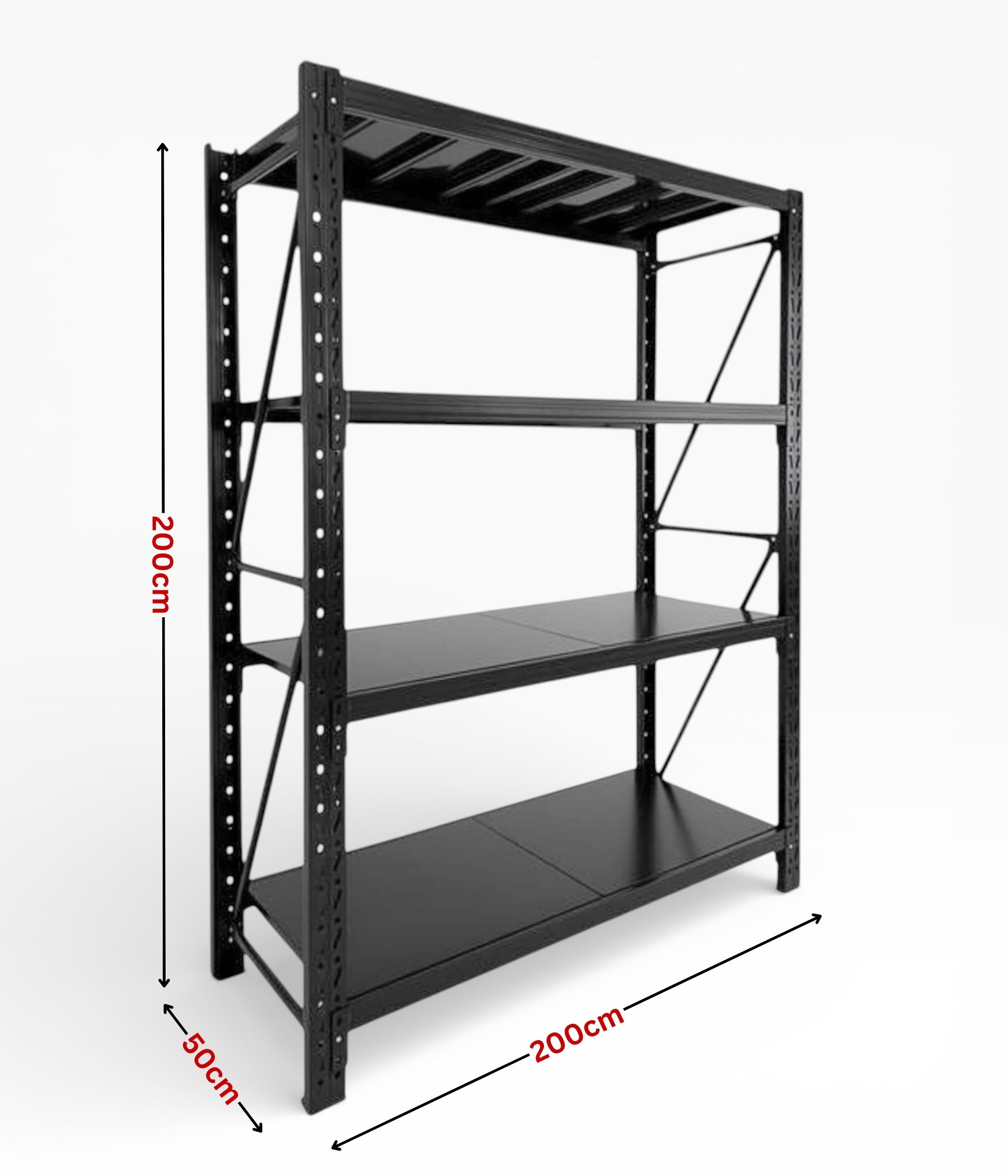 200cm (H) x 200cm (L) x 50cm (D) 800kg Heavy Duty Shelf, Black