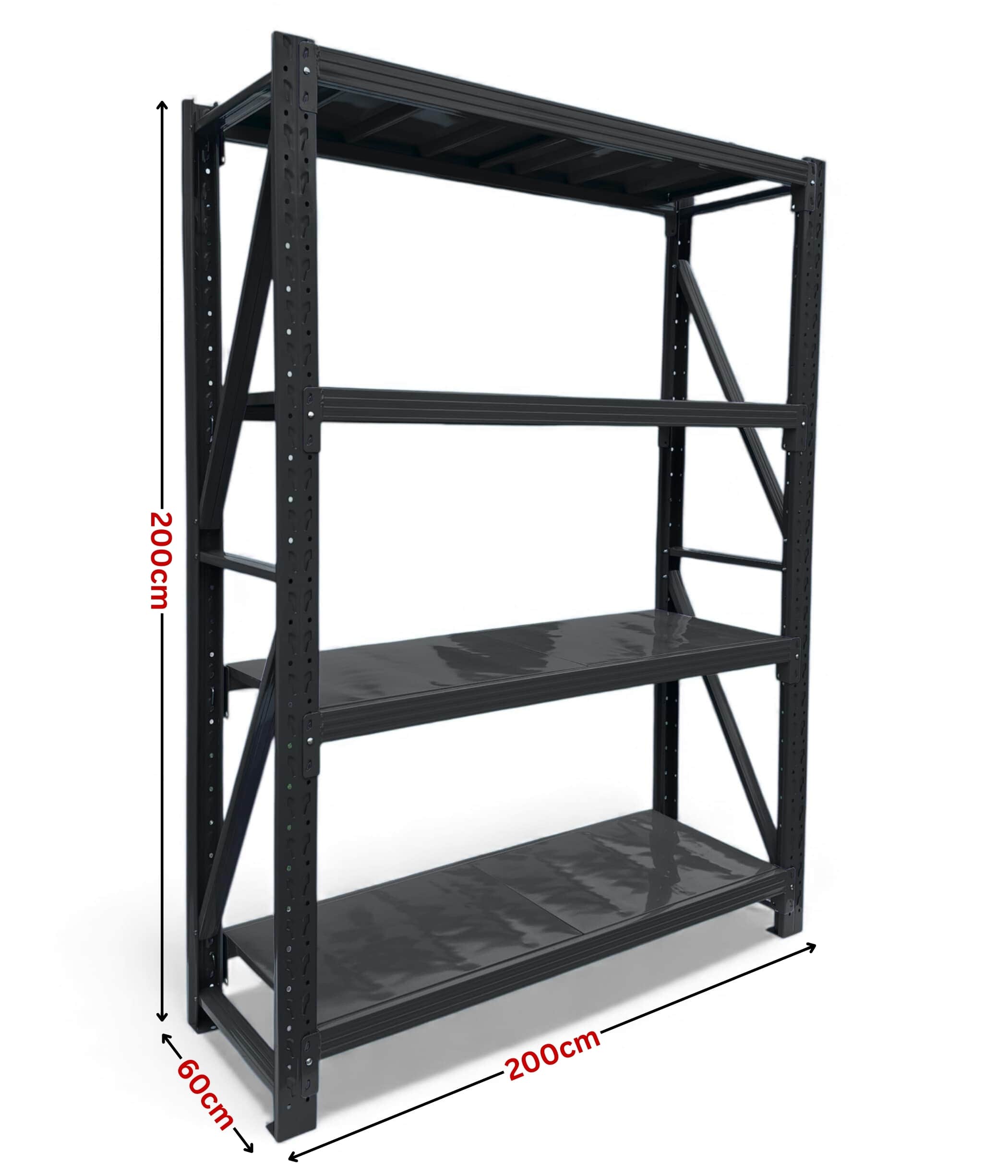 200cm (H) x 200cm (L) x 60cm (D) 800kg Heavy Duty Shelf, Black